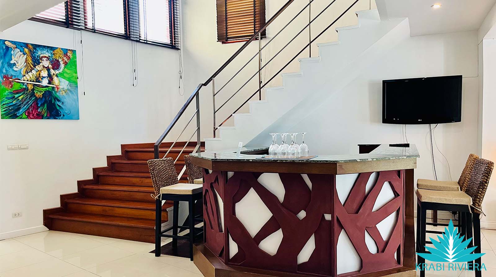 阿迈塔普拉别墅12号海景别墅是由甲米·里埃维拉公司名下管理的四栋别墅之一,坐落于南·茂海滩。这栋别墅可入住9人,家庭或朋友聚会。在一楼生活区中设有一个U型吧台;一间宽敞配有42英寸卫星电视的客厅;设备齐全的整体厨房及八座位的餐厅。同时在别墅一层有一间带有大号双人床和配备有电视的卧室,和卧室相邻的是公共浴室和步入式淋浴间。其余三间卧室则在别墅二楼。