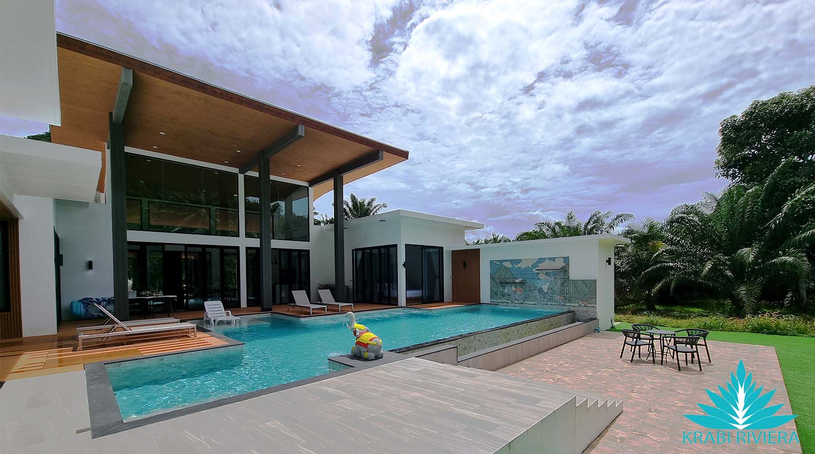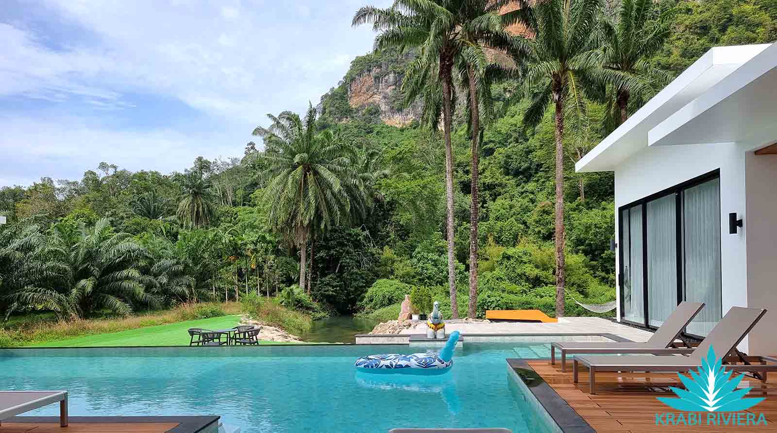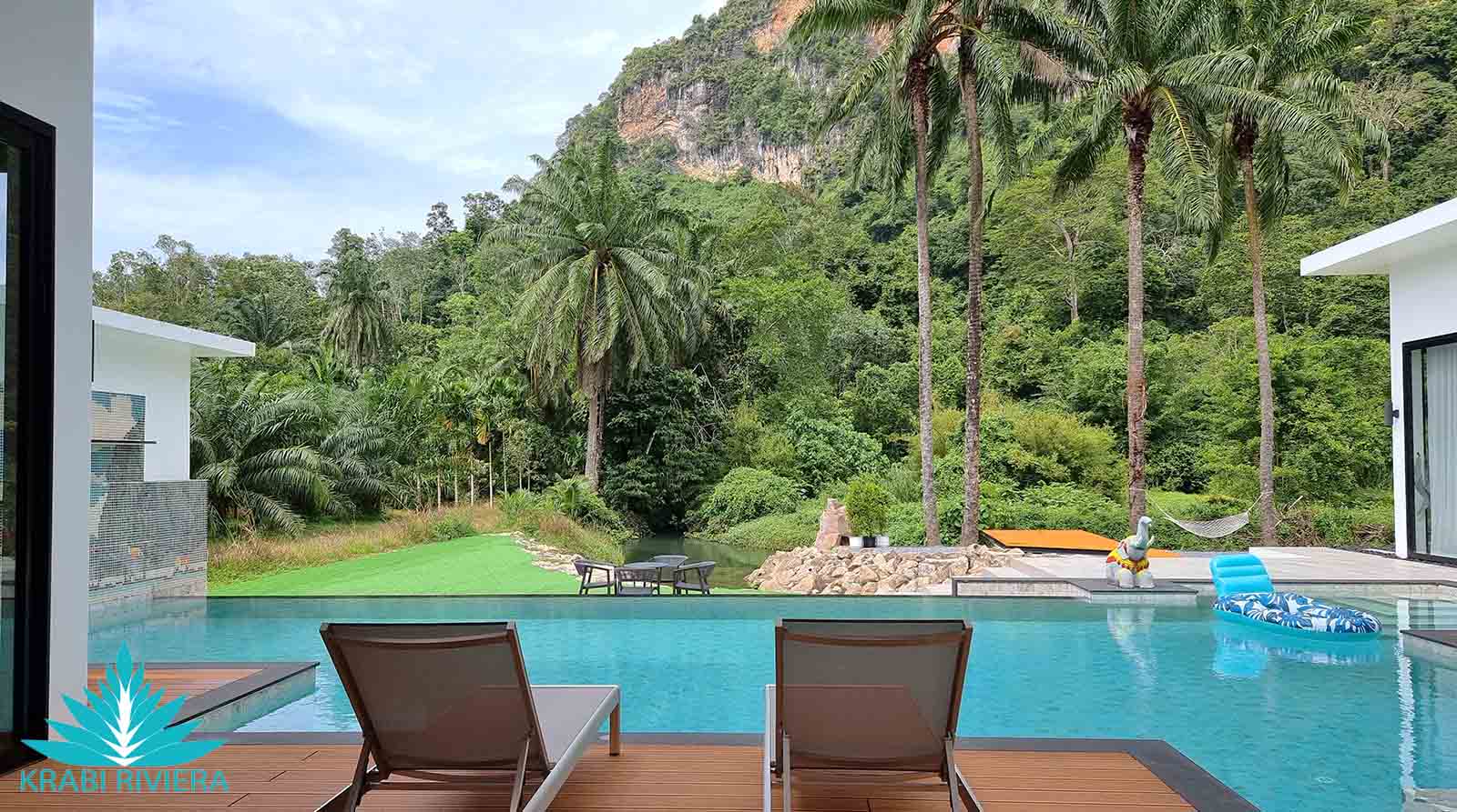 An Impressive and Spacious modern pool villa nestled in the lee of a mountain alongside the bank of a meandering brook offers a secluded and peaceful retreat Surrounded by Nature and Wildlife with a spectacular mountain view.