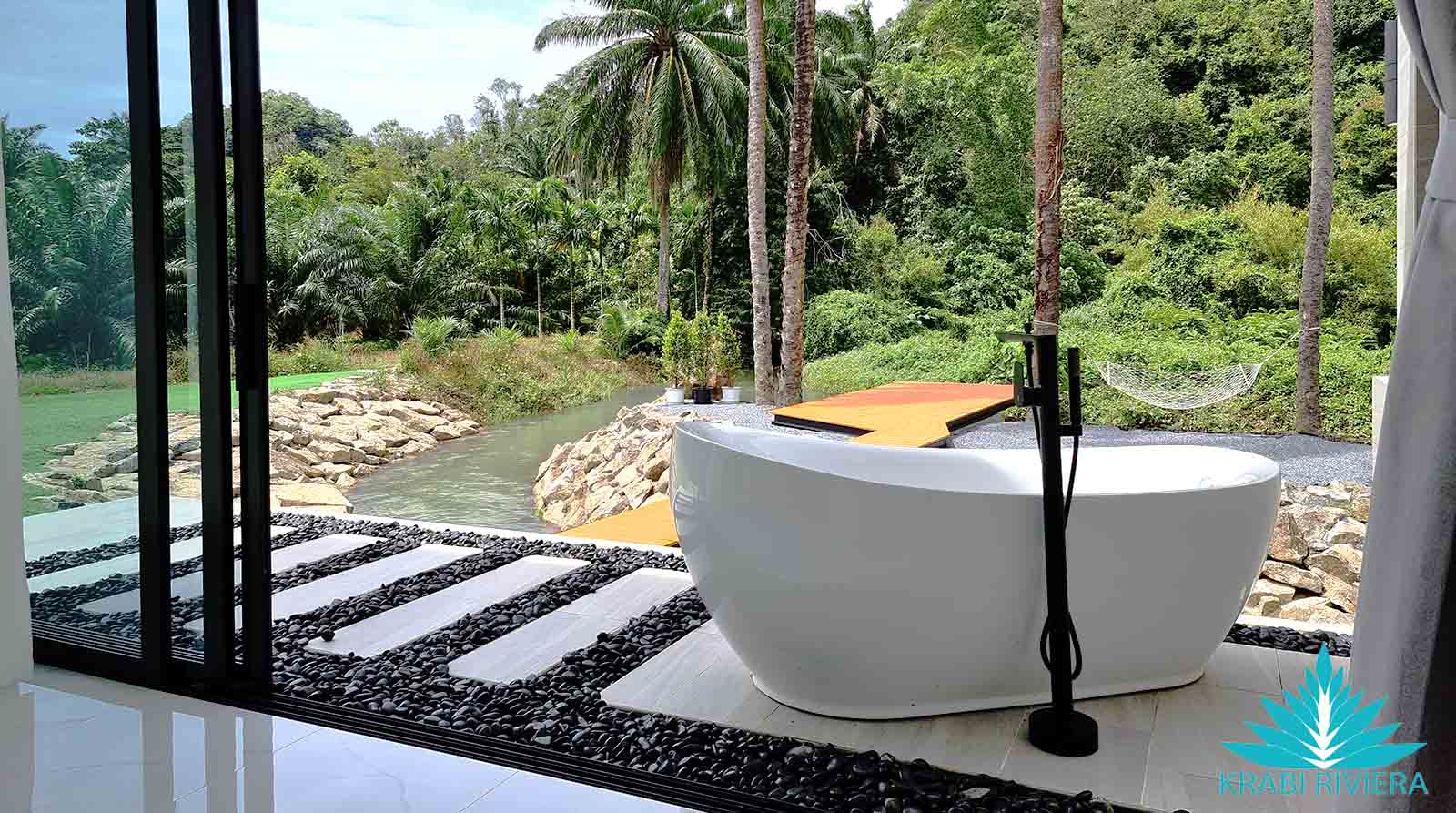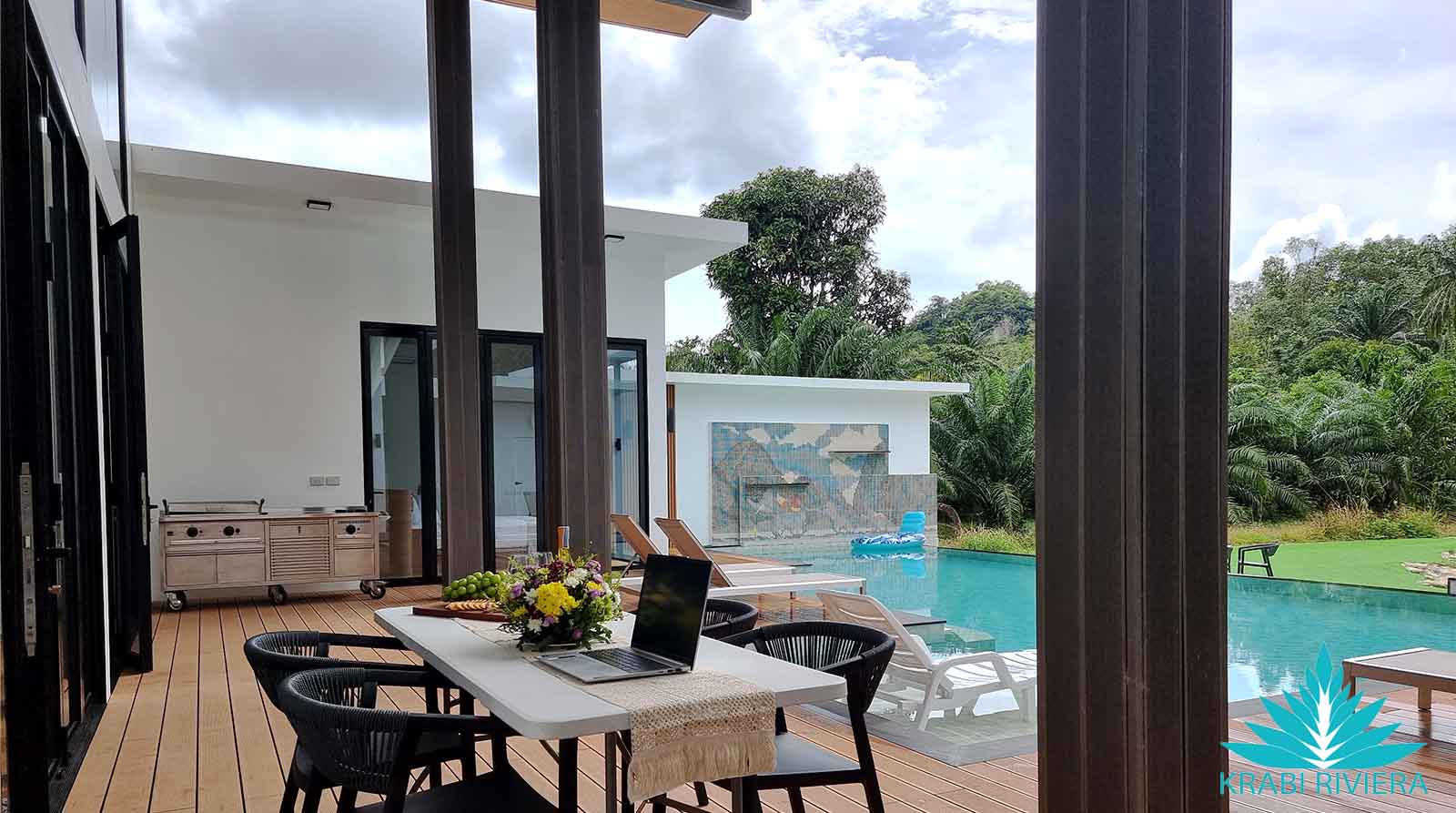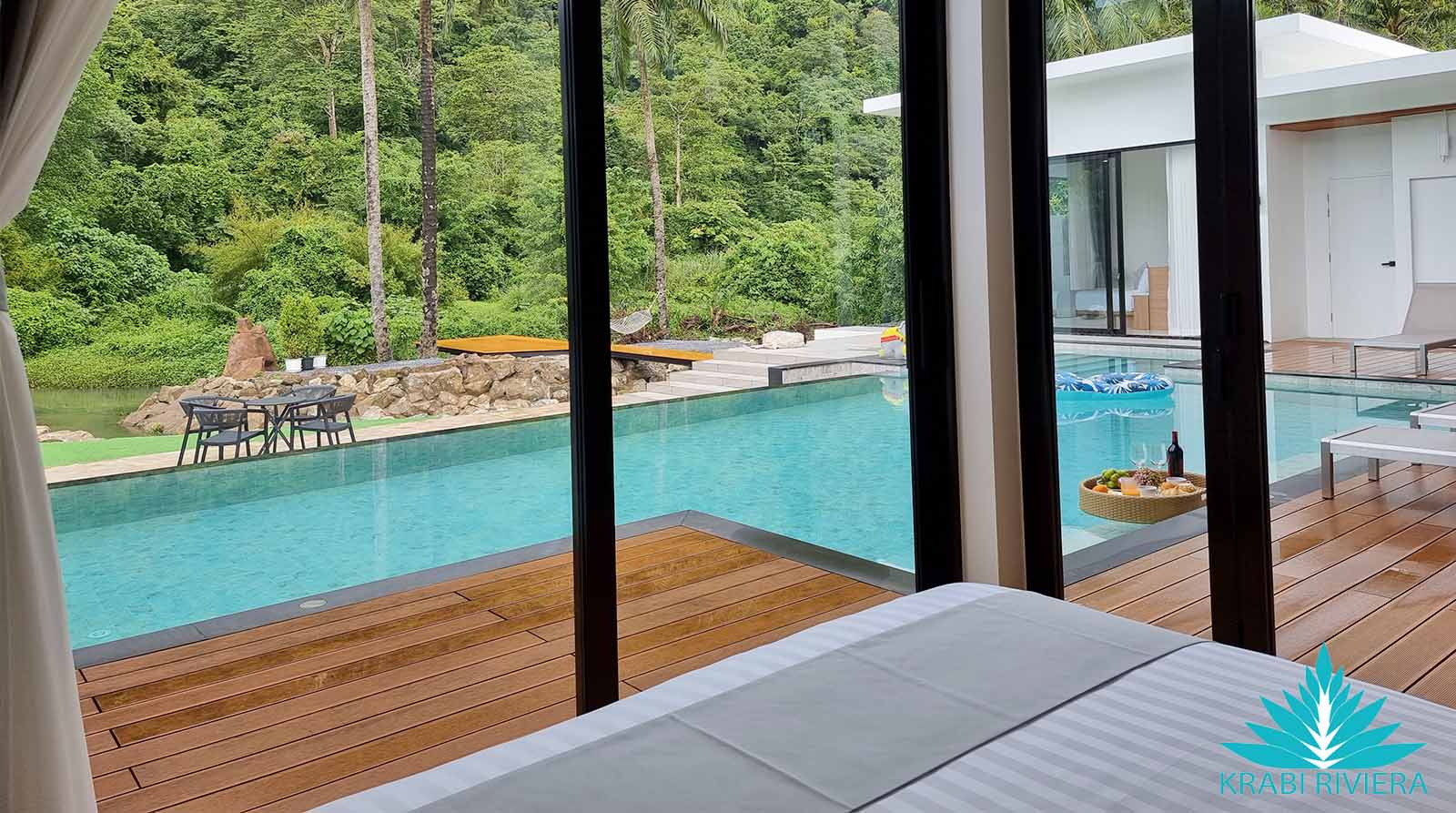 An Impressive and Spacious modern pool villa nestled in the lee of a mountain alongside the bank of a meandering brook offers a secluded and peaceful retreat Surrounded by Nature and Wildlife with a spectacular mountain view.